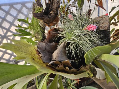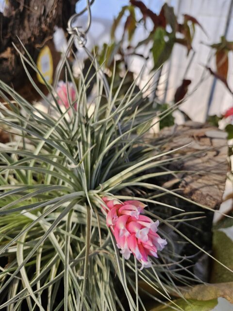 ほっと一息とハウスで休憩して珈琲を飲んでいるとエアプランツが綺麗に咲いていました