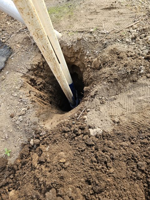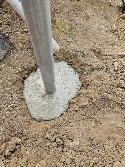 補強のために穴掘り ハウスの補強をしています。 30℃を超えるハウスの中で穴を掘って掘って掘りまくって 深さ80cmの穴を20ヵ所汗だくで掘って、柱を建ててコンクリートを人力でこねてこねて穴の中へコンクリートを流しこんでいきます。 無事に補強完了 2026-02-15 | 春友ぶどう園日記 | < 苗木移植 とかす >