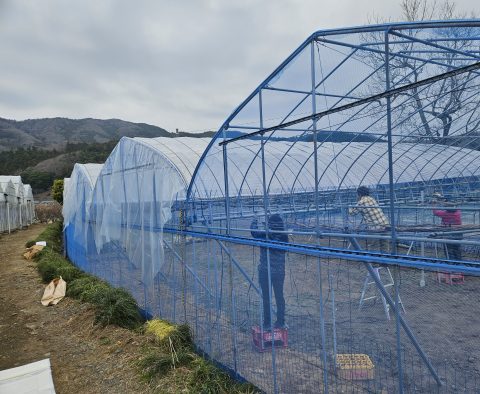 雨よけ 今日は雨よけのビニール張り 風が無く絶好のビニール張り日和 予定よりかなりはやく張り終えたので山の畑の整地作業まで終えることが出来ました。 2026-03-25 | 春友ぶどう園日記 | < 種まき 菜の花 >