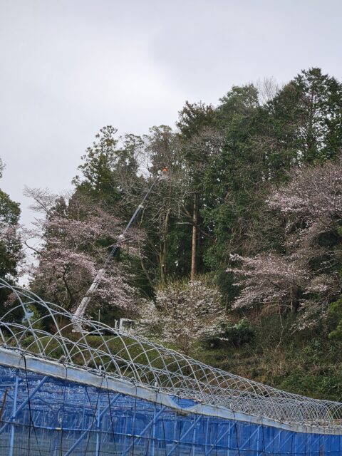 伐採依頼 畑の日当たりを良くするために伐採依頼して木を伐採してもらっています。 木は毎年大きくなるので邪魔になる木ははやめに伐らない大変なことになりますね、特に近年はナラ枯れの被害も頻発してるので去年まで元気(そうな)木が突如枯れて倒木することもあるので皆さんも邪魔な木は早めの伐採をオススメします。 流石プロは凄いです、ピンポイントの場所に倒す技術は流石の一言です 2026-04-01 | 春友ぶどう園日記 | < 満月の夜に 種まき >